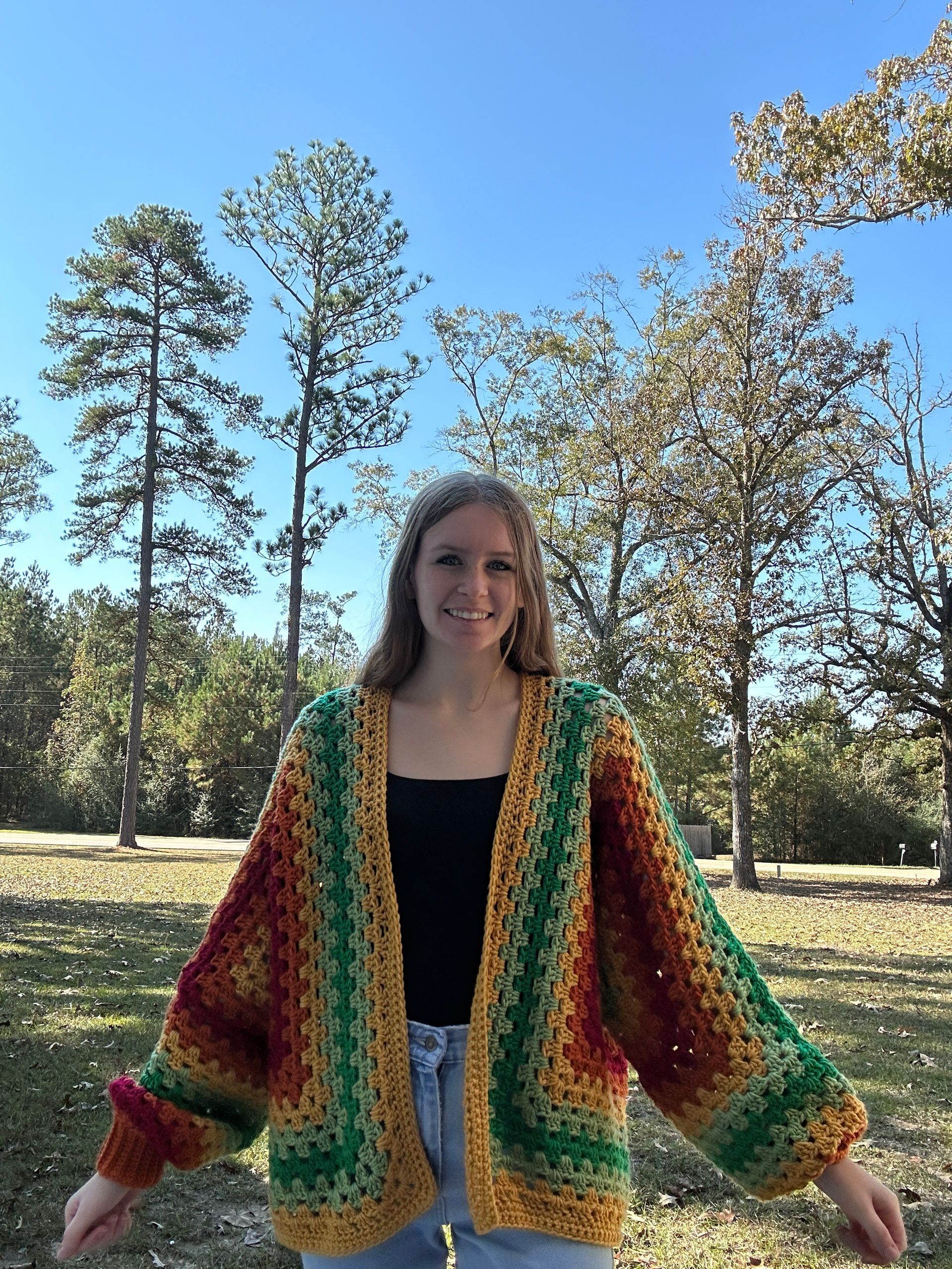 Wrap yourself in a cozy handmade Custom Hexagon Cardigan with cuffed sleeves! This piece is made to order (ships in 1-3 weeks).